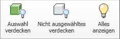 Mit der Gruppe "Sichtbarkeit" können Sie Unterobjektauswahlen ein- und ausblenden. Im Falle komplexer Geometrie können Sie durch das Ausblenden nicht direkt modellierter Teile schneller arbeiten. Die Gruppe steht auf allen Unterobjektebenen außer "Kante" und "Rand" zur Verfügung.