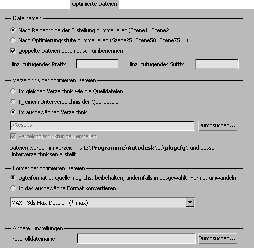 Mit diesen Optionen wird festgelegt, wie die von ProOptimizer erzeugten Dateien benannt werden sollen.