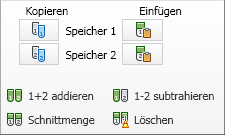 Verwenden Sie "Speicher 1 kopieren" und "Speicher 2 kopieren" für verschiedene Unterobjektauswahlen und anschließend "1 + 2 addieren", um alle Unterobjekte in beiden Speicherpuffern auszuwählen.