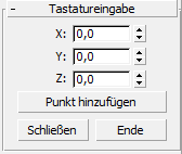 - Geben Sie im Rollout "Tastatureingabe" Werte in das X-, Y- und Z-Feld ein, um eine Scheitelpunkt-Koordinate festzulegen.