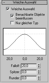 Das Rollout Weiche Auswahl für Punkt- und KS-Unterobjekte enthält die Steuerelemente für diese Funktion. Das Kontrollkästchen Weiche Auswahl ist vorgabegemäß deaktiviert.
