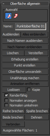 Die Steuerelemente in diesem Rollout wirken sich auf alle Oberflächenarten aus. Je nach Art der Oberfläche wird ein weiteres Rollout angezeigt, das spezielle Steuerelemente für die Art der Oberfläche enthält.