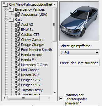 Damit können Sie nach dem Zufallsprinzip oder gezielt Civil View-Fahrzeugtypen auswählen, die auf bestimmte Einträge in der Liste der Fahrzeugobjekte anzuwenden sind.