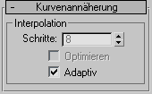 Steuerelemente zur Kurvenannäherung werden in den Erstellungsparametern für Kurvenobjekte und in einem Rollout "Kurvenannäherung" für NURBS-Modelle (NURBS-Objekte auf der obersten Ebene) angezeigt. Auf der Modellebene beeinflussen die Annäherungssteuerelemente alle Kurven-Unterobjekte im Modell.