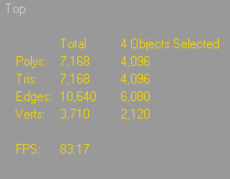 Zeigt die Anzahl der Scheitelpunkte in der Szene und der Auswahl an.