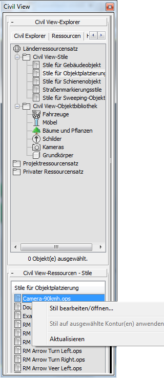 Bietet Zugriff auf alle Stile und Objektdefinitionen in den aktiven Civil View-Ressourcensätzen.