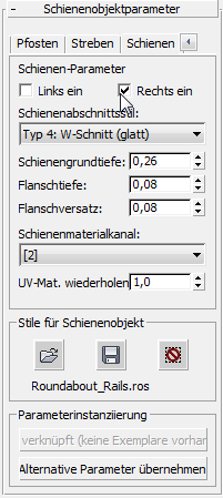 - Wenn diese Option aktiviert ist, verwendet die Schiene die Pfosten-Geometrie. Wenn diese Option deaktiviert ist, hat die Schiene keine Pfosten.