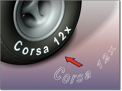 KonturZusammenführen kombiniert die Buchstaben (eine Text-Kontur) mit dem Netz, aus dem der Reifen geformt ist.