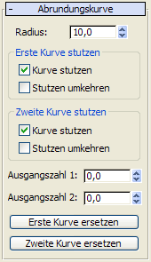 In diesen beiden Bereichen können Sie festlegen, wie die übergeordneten Kurven gestutzt werden. Die Steuerelemente sind für beide Bereiche identisch. "Erste" und "zweite" beziehen sich auf die Reihenfolge, in der Sie die übergeordneten Kurven gewählt haben.