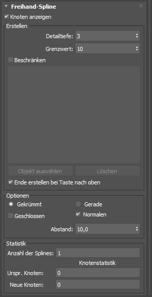 - Aktivieren Sie im Rollout "Freihand-Spline" die Option "Beschränken".