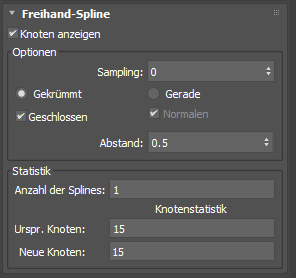 - Zeigt die Anzahl der während des Zeichnens des Splines automatisch erstellten Knoten an (0 vor dem Zeichnen).