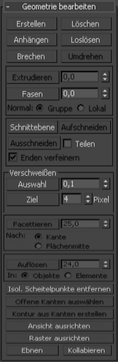 Eine detaillierte Beschreibung dieser Steuerelemente finden Sie unter Rollout "Geometrie (Netz) bearbeiten".