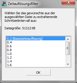 Mit diesen Steuerelementen können Sie das Schrittintervall der Animation anpassen, um die Leistung beim Lesen der Datei zu verbessern und die Anzahl der Animations-Keys zu verringern, die für jedes importierte Fahrzeug generiert werden.