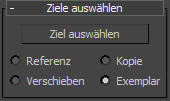 Wenn Sie Zielobjekte auswählen, legen Sie für jedes Ziel den Typ Referenz, Verschieben (das Objekt selbst), Kopie oder Instanz fest. Machen Sie Ihre Auswahl davon abhängig, wie Sie die Szenen-Geometrie verwenden möchten, nachdem Sie das Morph-Objekt erstellt haben.