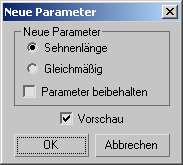 Mit der Schaltfläche "Neue Param." für KS-Kurven und Oberflächen wird dieses Dialogfeld aufgerufen. Durch Erstellen neuer Parameter für ein KS-Unterobjekt ändert sich sein Parameterraum, um das Zusammenwirken zwischen den Positionen der Steuerpunkte und der Kontur des Unterobjekts zu verbessern.