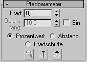 Im Rollout "Pfadparameter" können Sie die Position mehrerer Konturen in unterschiedlichen Abständen entlang des Extrusionspfads einstellen.