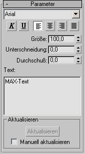 Für den Text können alle auf Ihrem System installierten Windows-Schriftarten sowie die PostScript-Type-1-Schriften aus dem Ordner \Fonts im Stamminstallationsordner von 3ds Max verwendet werden.