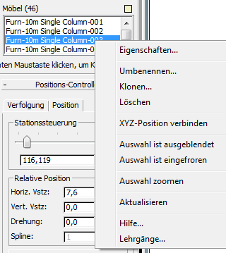 Um das kontextsensitive Pop-Up-Menü anzuzeigen, klicken Sie mit gedrückter STRG-Taste auf ein Element in der Liste, oder klicken Sie mit der rechten Maustaste auf das Element.