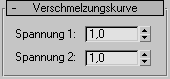 Die "Spannung" beeinflusst die Tangente zwischen einer übergeordneten Kurve und der Verschmelzungskurve. Je höher der Spannungswert, desto stärker verläuft die Tangente auf einer Parallele zur übergeordneten Kurve und desto glatter der Übergang. Je niedriger die Spannung, desto größer der Tangentenwinkel und desto stärker der Übergang zwischen der übergeordneten und der Verschmelzungskurve.