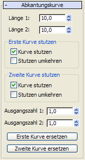 In diesen beiden Bereichen können Sie festlegen, wie die übergeordneten Kurven gestutzt werden. Die Steuerelemente sind für beide Bereiche identisch. "Erste" und "zweite" beziehen sich auf die Reihenfolge, in der Sie die übergeordneten Kurven gewählt haben.