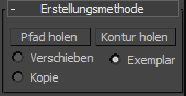 Über das Rollout Erstellungsmethode können Sie zwischen einer Kontur und einem Pfad für die Erstellung des Extrusionsobjekts wählen sowie die Aktionsart für das Extrusionsobjekt angeben.
