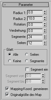 Erstellt die zum Anwenden von Map-Materialien auf den Torus notwendigen Koordinaten. Vorgabe = Aktiviert.