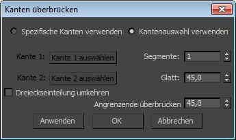 Wählen Sie, ob Kanten, die Sie mit den Steuerelementen des Dialogfeldes auswählen, überbrückt werden oder eine vorhandene Auswahl dazu verwendet wird. Folgende Optionen sind verfügbar: