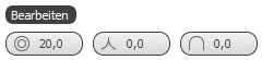 Auf den Unterobjektebenen "Scheitelpunkt" und "Kante" erscheinen zusätzliche Steuerelemente im Bearbeiten-Caddy. Diese werden in den entsprechenden Abschnitten der Hilfe behandelt.