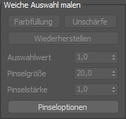 Der maximale relative Auswahlwert der gemalten weichen Auswahl. Die Werte der umgebenden Scheitelpunkte innerhalb des Pinselradius fallen gegen einen Wert von 0 ab. Vorgabe = 1,0.