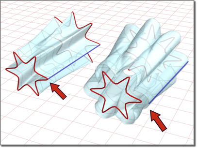 Passt die Position des Anfangspunkts der Kurve an. Dadurch können unerwünschte Verdrehungen oder Verformungen in der Oberfläche vermieden werden.