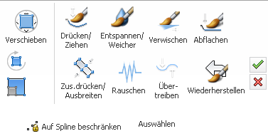 Wenn Sie nach dem Aufruf von "Zuweisen" die Funktion "Abbrechen" oder den Pinsel "Wiederherstellen" (siehe oben) verwenden, wird das Modell wieder in die Form zurückversetzt, die es beim letzten Aufruf von "Zuweisen" hatte.