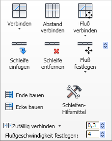 Die Funktionen der Gruppe "Schleifen" sind für die Arbeit mit Kantenschleifen konzipiert und umfassen Hilfsmittel für das Erstellen von Schleifen in und außerhalb von Polygonen, das automatische Anpassen einer neuen Schleife an die Kontur eines Objekts, zufällige Pfade usw.