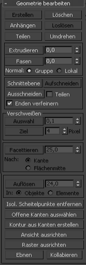 Eine detaillierte Beschreibung dieser Steuerelemente finden Sie unter Rollout "Geometrie (Netz) bearbeiten".