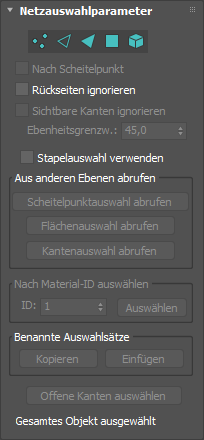 Mit den Symbolen im oberen Bereich des Rollouts "Auswahl" können Sie die Methode der Unterobjektauswahl bestimmen.