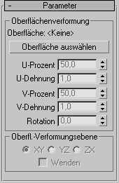 Der Modifikator "Oberflächenverformung" arbeitet wie der Modifikator "Patchverformung", verwendet jedoch im Gegensatz zu diesem einen NURBS-Punkt oder eine KS-Fläche anstatt einer Patch-Fläche zur Anwendung der Oberflächenverformung.