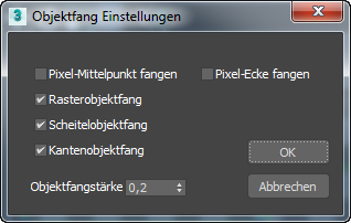 erhalten Sie Kontrolle beim Erstellen, Verschieben, Drehen und Skalieren von Unterobjekten, indem Sie bei Aktivierung den Cursor zu einem bestimmten Teil der vorhandenen Geometrie oder anderen Szeneelementen "springen" lassen. Sie können mit den Objektfang-Einstellungen die Ziele für das Einfangen festlegen