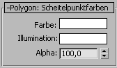 Verwenden Sie diese Steuerelemente, um die Farbe, die Beleuchtungsfarbe (Schattierung) und die Alphawerte (Transparenz) von Scheitelpunkten ausgewählten Polygonen oder Elementen zuzuweisen.