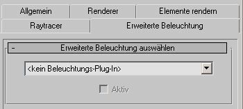 Wenn eine erweiterte Beleuchtungsoption gewählt ist, können Sie durch Klicken auf "Aktiv" festlegen, ob die erweiterte Beleuchtung beim Rendern der Szene verwendet werden soll oder nicht. Vorgabe = Aktiviert.
