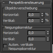 Diese Einstellungen neigen die Kamera horizontal oder vertikal. Sie können diese Option insbesondere in Szenen, in denen die Kamera bereits nach oben oder unten geneigt ist, verwenden, um die Perspektive zu korrigieren.