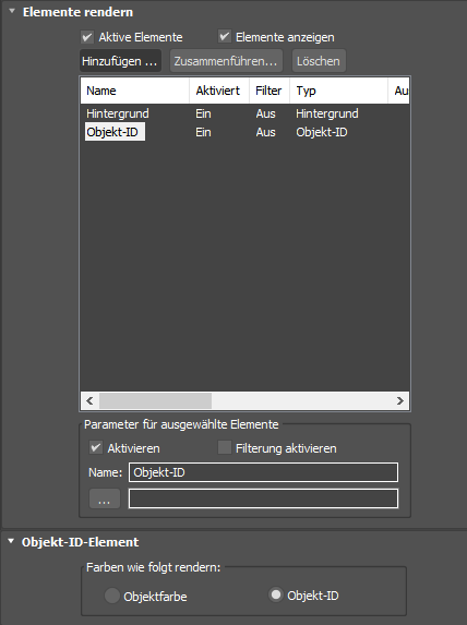- Wenn diese Option aktiviert ist, werden durch Klicken auf "Rendern" die separaten Elemente gerendert. Vorgabe = Aktiviert.