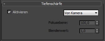Wenn diese Option aktiviert ist, erzeugt der Rendervorgang Tiefenschärfe. Vorgabe = Deaktiviert.