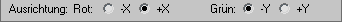 Bei "Welt", "Bildschirm" und "Lokales XYZ" bedeutet Rot, dass die Normalen entweder in positiver oder negativer Richtung entlang der X-Achse ausgerichtet sind, Grün zeigt die Ausrichtung entweder in positiver oder negativer Richtung entlang der Y-Achse an.