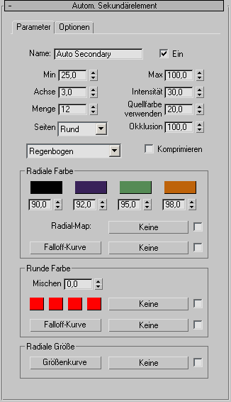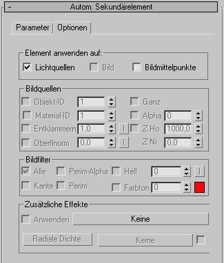 Rollout Autom. Sekundärelement, Registerkarte Parameter