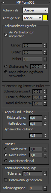 Dieser Bereich ist nur verfügbar, wenn Kollision als auf Konvexe Hülle gesetzt ist.