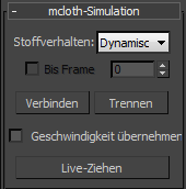 Nachdem das ausgewählte mCloth-Objekt eingebacken wurde, können Sie mit der Funktion Trennen die Keyframes entfernen und den Status Dynamisch für den Stoff wiederherstellen.