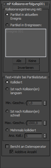 - Aktivieren Sie bei Verwendung der erweiterte Datenbearbeitungs-Tools diese Option, falls die Daten zur Anzahl der Kollisionen vom Datenoperator verwendet werden sollen. Sie können den Unteroperator Eingabe-mParticles verwenden, um diese Daten in einem Datenoperator abzurufen.