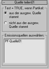 Mit dem Test "Quelle teilen" können Sie den Partikelfluss auf der Grundlage des Partikelursprungs teilen. Sie können angeben, ob Partikel aus einer oder mehreren Partikelfluss-Quellen zum nächsten Ereignis weitergeleitet werden können.