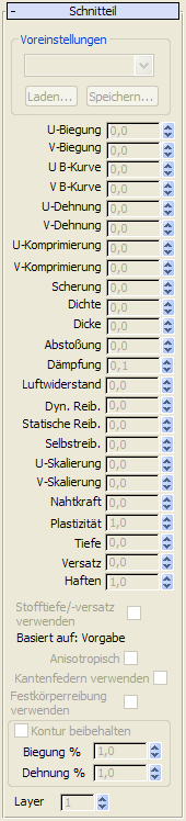 Es werden Voreinstellungen von Ihrer Festplatte geladen. Klicken Sie auf diese Schaltfläche, und navigieren Sie zu dem Verzeichnis mit Ihren Voreinstellungen, um sie in "Stoffeigenschaften" zu laden.