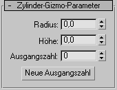 Mit "Zylinder-Gizmo" können Sie in Ihrer Szene einen zylinderförmigen Gizmo erstellen. Klicken Sie auf die Schaltfläche "Zylinder-Gizmo", um das Rollout "Zylinder-Gizmo-Parameter" anzuzeigen.