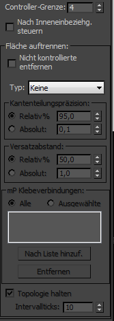 - Wenn diese Option aktiviert ist, können Sie einen zeitlichen Grenzwert für die Änderung der Topologie des modifizierten Objekts festlegen. Wichtig ist dies beim Rendern mit Bildbewegungsunschärfe; in allen anderen Fällen können Sie diese Einstellung ignorieren.